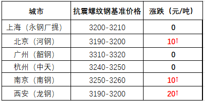 截至午間,國內(nèi)部分市場螺紋鋼(抗震)基價(jià)如下:上海市場3200-3210元/噸;北京市場3190-3200元/噸;廣州市場3310-3320元/噸;杭州市場3240-3250元/噸;南京市場3250-3260元/噸;西安市場3190-3200元/噸。環(huán)比來看,截至午間收盤,全國主要市場一線品牌價(jià)格有穩(wěn)有漲。