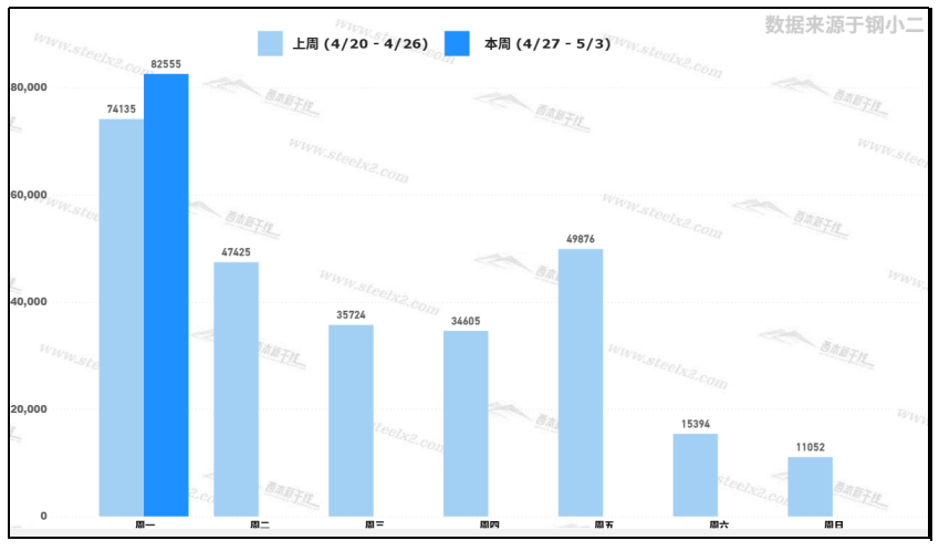 據(jù)鋼小二平臺樣本數(shù)據(jù),4月27日采樣全國工程需求量為82,555噸,較上一個交易日需求增加。