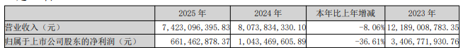 永興材料4月27日披露年報,2025年實現(xiàn)營業(yè)收入74.23億元,同比下降8.06%;實現(xiàn)凈利潤6.61億元,同比下降36.61%。