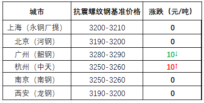 截至午間,國內(nèi)部分市場螺紋鋼(抗震)基價(jià)如下:上海市場3200-3210元/噸;北京市場3190-3200元/噸;廣州市場3280-3290元/噸;杭州市場3250-3260元/噸;南京市場3250-3260元/噸;西安市場3190-3200元/噸。環(huán)比來看,截至午間收盤,全國主要市場一線品牌價(jià)格多數(shù)持穩(wěn),個(gè)別微調(diào)。